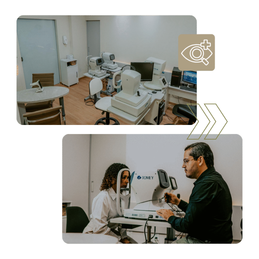 Durante a consulta, é feita uma análise cuidadosa da estrutura ocular, hábitos diários e fatores que possam estar interferindo na sua saúde visual.